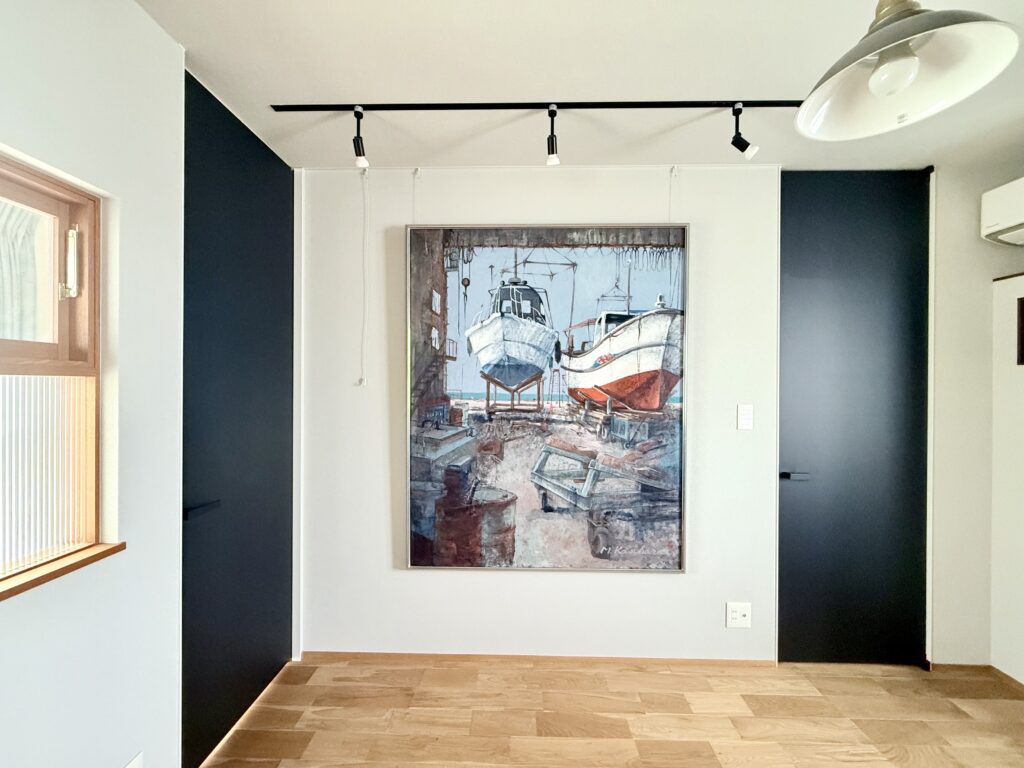 そこで、絵を引き立てるための壁と照明、ピクチャーレールを設けました。