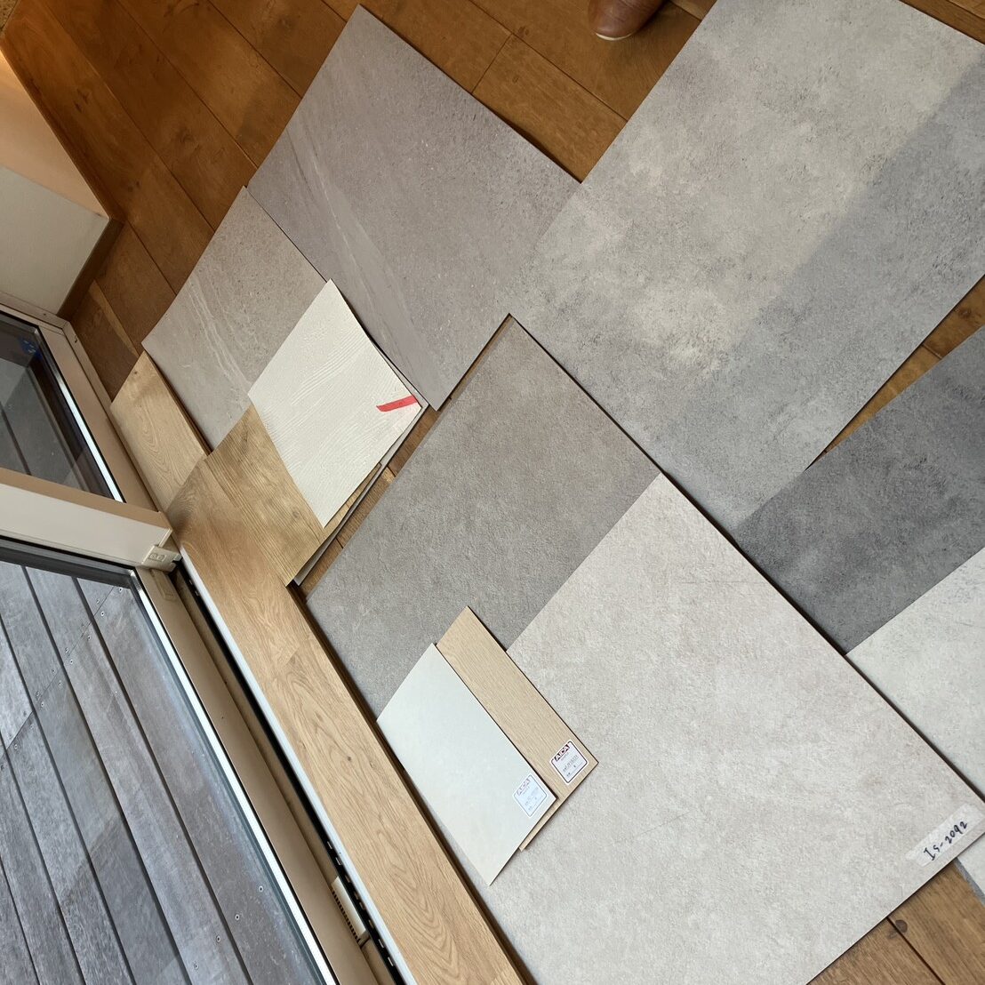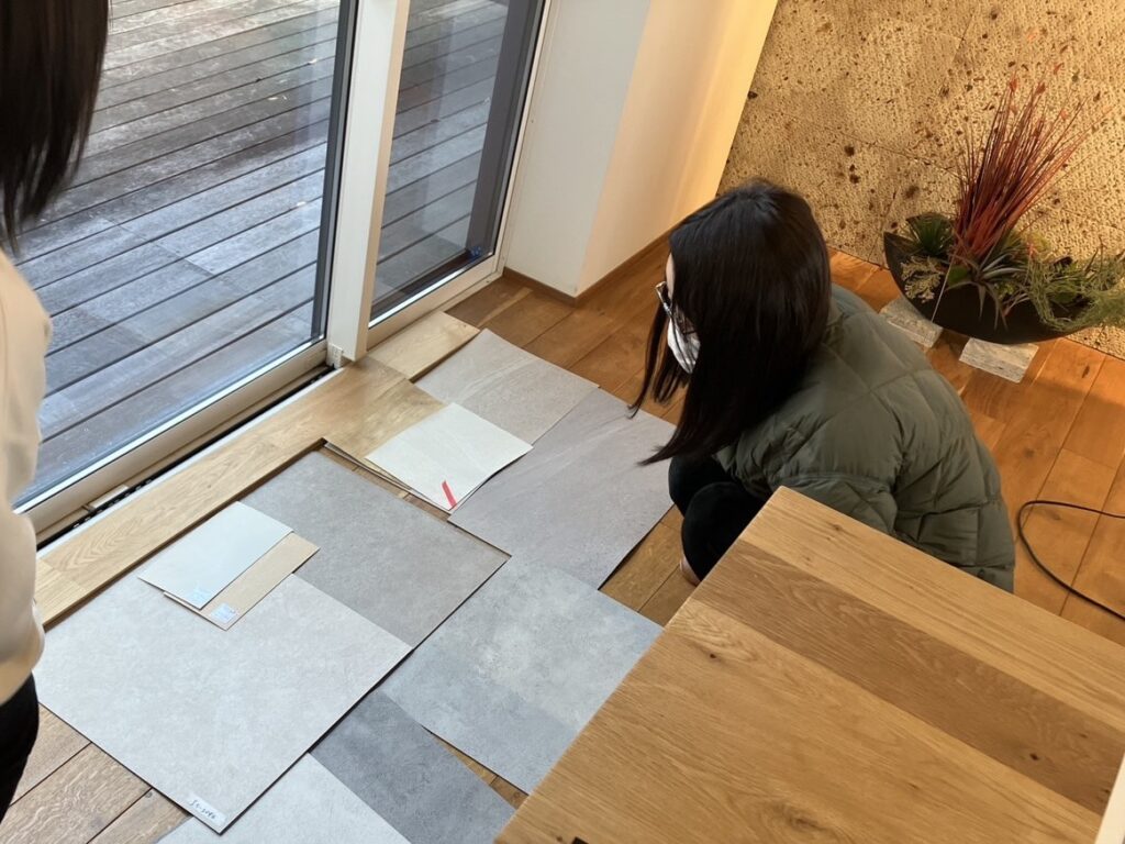 たくさんあるクロス・塩ビタイルのなかから候補を絞ります。