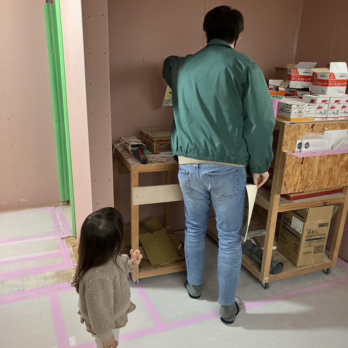 子ども室の収納のクロス決め中。